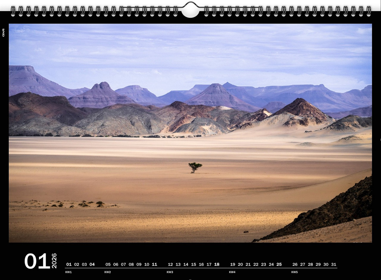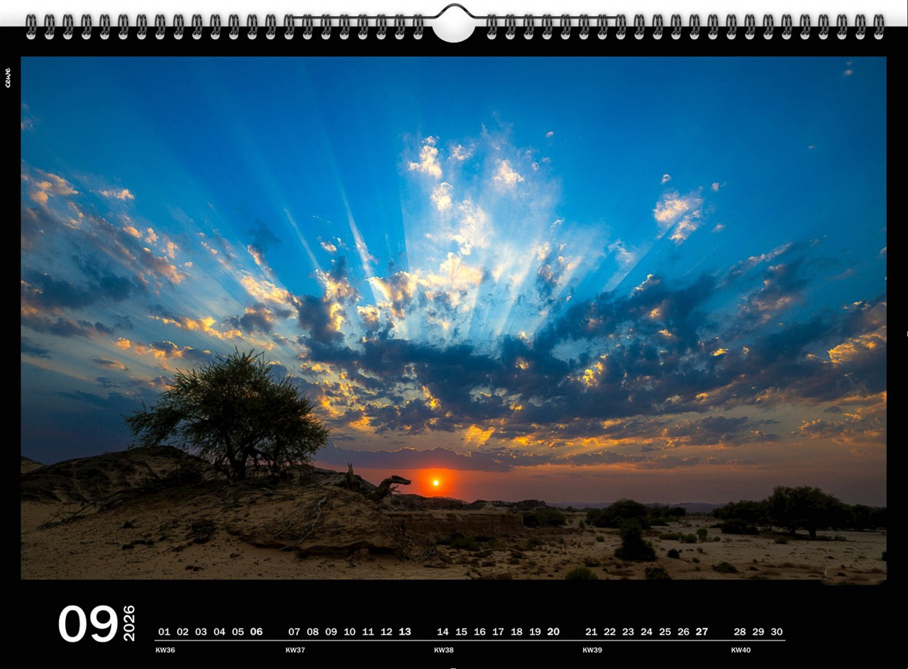 Dieser Panorma-Wandkalender ist in den Formaten DIN A2 und DIN A3 mit individuellen Monatsbeginn erhältlich.